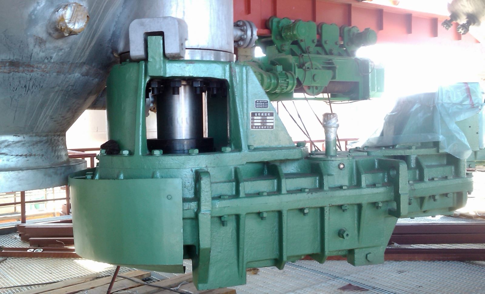 海洋鉆井平臺(tái)齒輪傳動(dòng)裝置,2004年取得了ABS和CCS船檢證書,先后為原北方鉆井公司“渤海8號”、原南方鉆井公司“南海1號”及“南海4號”等平臺(tái)開發(fā)生產(chǎn)了升降傳動(dòng)裝置和海水泵塔等,2011年為武漢船用機(jī)械有限公司配套研制生產(chǎn)了“自升式海洋鉆井平臺(tái)提升裝置”。